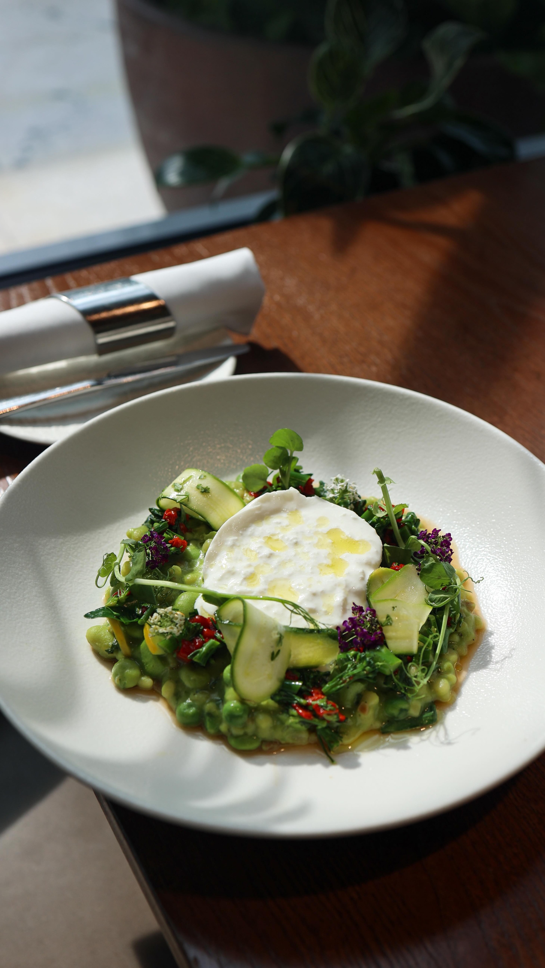 Made with wild garlic, fresh peas, seasonal asparagus and toasted pine nuts. All served with oozing burrata.