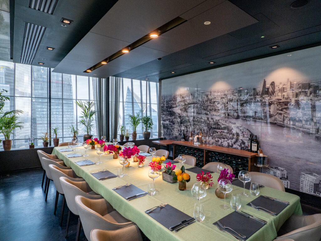 Within Fenchurch Restaurant sits the Viñoly Room, a sophisticated private dining room suitable for up to 16 guests with unparalleled views of the City and beyond.